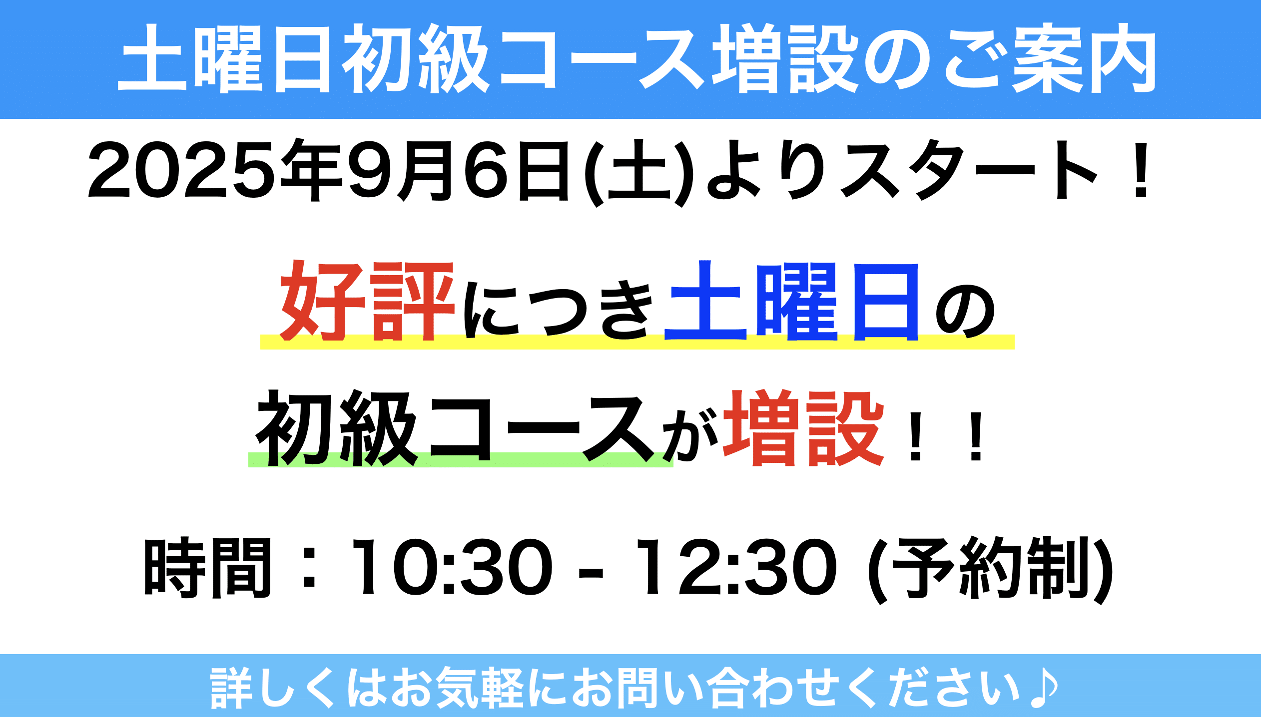 土曜日の午前に初級コース増設!